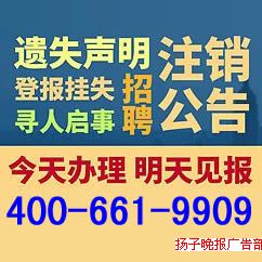 扬子晚报广告发布热线:400-661-9909 13809039462 025-84460253 QQ:1620898030 传真:025-84460253 地址:南京市白下区中山南路230号 安瑞大厦4楼401室