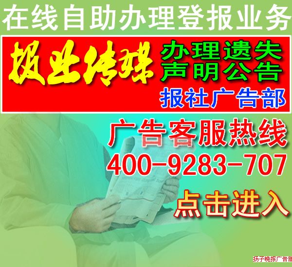 扬子晚报广告发布热线:400-9283-707 13809039462 025-84460253 QQ:297302889 传真:025-84460253 地址:南京市白下区中山南路230号 安瑞大厦4楼401室